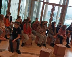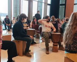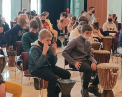 A MűPa élménydobolás programján vehettünk részt a Lónyay Református Gimnázium 7. A osztályával, ahol a gyerekek az Ethnosound vezetésével különleges afrikai és perui dobok, fa és karton cajon-ok segítségével kóstolhattak bele afrikai és spanyol ritmusokba. Összesen 60 diák vett részt a doboláson. Az összhangot közösen hangoztatott, előre begyakorolt ritmusok adták, amit vállalkozó szellemű diákok és tanárok improvizációi színesítettek egy 15 perces rögtönzött záróprodukcióban.