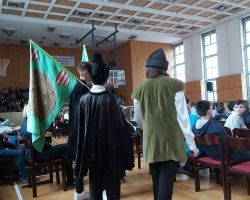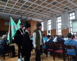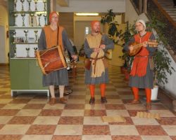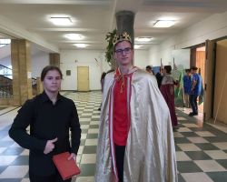 Nov. 18-án, pénteken, iskolánkban Aranybulla napot tartottunk a bulla kiadásának 800. évfordulója alkalmából. Reggel 7 és 8 óra között kora középkori, 13. századi muzsikát hallgathattunk a Sub Rosa együttes jóvoltából. Felemelő élmény volt, ahogy a kora reggeli órák csendjét az aulában a duda hangja töltötte be. A nap végén, a 6. és a 7. órákban diákjaink egy színdarab (A beszélő bulla) formájában elevenítették fel a korszak jelentős eseményét. Ősbemutatónak lehettünk szem és fültanúi. A darabot Jenei Miklós tanár úr írta.