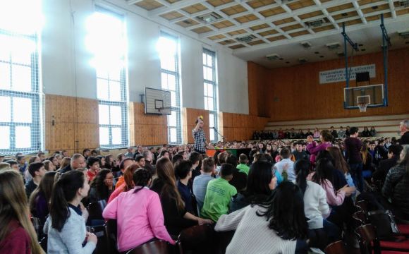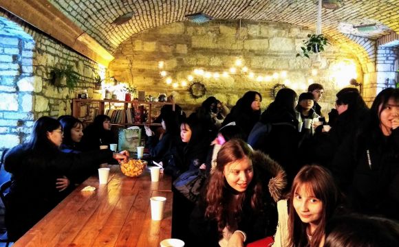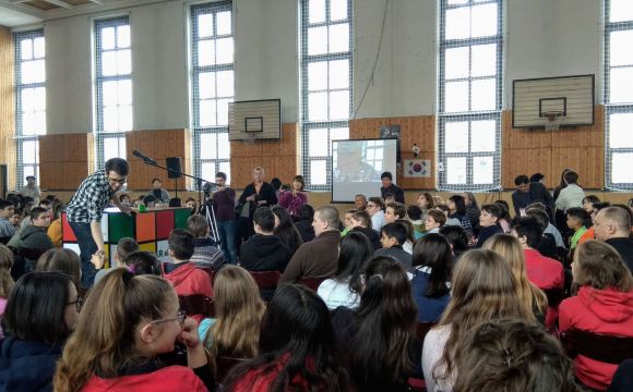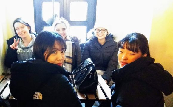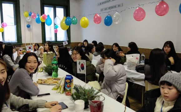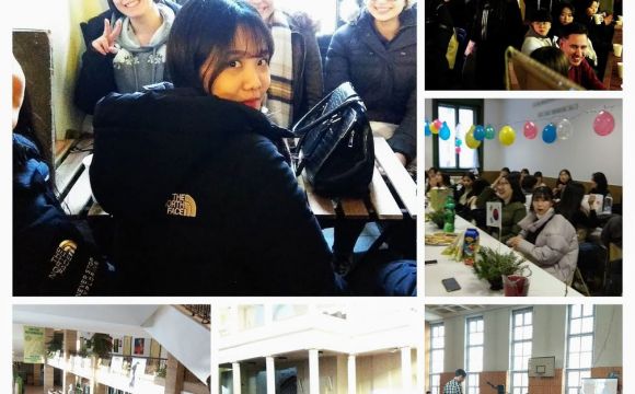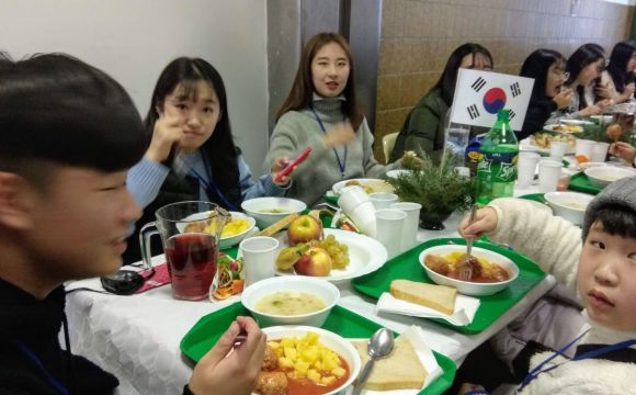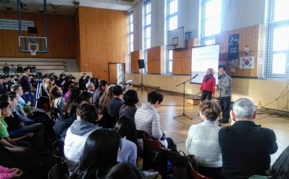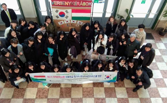 Január 10-én reggel 30 koreai diák 8 tanár kíséretében megérkezett a gimnáziumba. Rövid ismerkedés után az egész iskola helyet foglalt a díszteremben és ezután mindkét ország országismertető prezentációit nézhették meg a diákok. A közös ebéd után átmentünk a Nemzeti Múzeumba, ahol a Seuso kincsekkel ismerkedtek a vendégek. Ezután a Kálvin téri templomban Farkas Alíz tanárnő orgonajátékát hallgathattuk. Ezután túrára indultunk, megmásztuk a havas Gellérthegyet. A vendég diákok rengetek fotót készítettek a gyönyörű panorámáról. Az estét a diákok lónyays családoknál töltötték. Megkóstolhatták a finom magyar ételeket, és beszélgethettek az őket érdeklő kérdésekről. Mindnyájan nagyon jól érezték magukat.