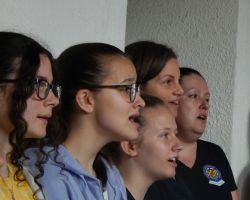 Május 24-én a negyedórás tízórai szünetünkben egy rövid dicsőítő alkalmat tartottunk az aulában, lélekben készülve a közelgő pünkösdi ünnepre, egyúttal megélve a testvéri közösséget, közös megpihenést az Úr magasztalásában. Aulánk zengett a diákok hangjától, az énekeket vezető egyik tanárként nagy öröm volt ennek a részesévé válni. Nem is szerettük volna abbahagyni, nehezen tudtunk elindulni a következő óránkra, olyan jó volt együtt dicsérni az Istent. Valószínűleg nem ez volt az utolsó ilyen alkalom.