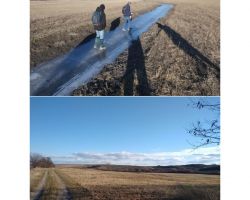 A Gombai-patak duzzasztása miatt egy kiöntött kis csatornát hoztak létre a mellette elterülő sík vidéken. Ez a hideg időjárás miatt teljesen befagyott, így innen kb. 200 méteren keresztül „korcsolyázva” folytattuk tovább utunkat.