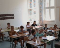 A tábor második napját áhítattal kezdtük. A délelőtt során a diákok tanórákon vettek részt, hogy már az évkezdés előtt megismerjék tanáraikat és a rájuk váró feladatokat.
