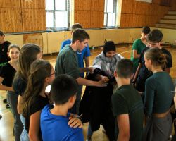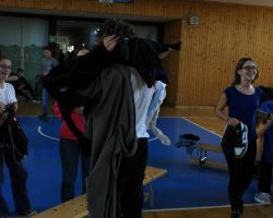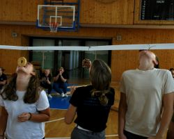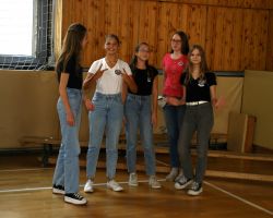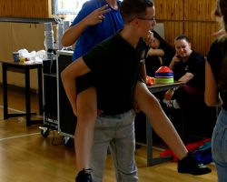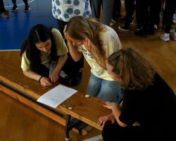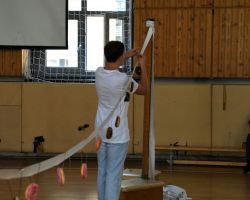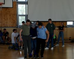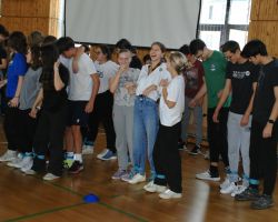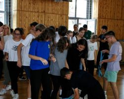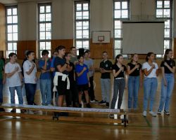 Szeptember 19-én tartottuk a 9. évfolyam számára a gólyaavatást. A koradélutáni órákban a 4 osztálynak változatos, hol szellemi, hol ügyességi, hol fizikai jellegű kihívásokkal kellett szembenéznie, melyeket jobbnál jobb eredményekkel oldottak meg a diákok. Google-fordítóval írt dalszövegeket ismertek fel, fánkot és csokit ettek kéz nélkül, filmekből készítettek állóképeket, megpróbáltak minél több ruhát adni a gyanútlan önként jelentkezőkre, összekötött lábbal vettek részt egy váltóversenyen, majd az orrukkal festették fel egy lapra az osztályfőnökeik neveit. A jó hangulatú délutánt egy humoros “gólyaeskü” zárta.