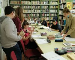 Március elején két rendhagyó irodalomórát tartott Dr. Kiss Magdaléna tanárnő az iskolai könyvtárban. Egy héttel ezelőtt a 7. A, kedden a 7. B osztály több tagja is Jókai-művek után kutatott a könyvtár polcain. Miután felfedezték a kötelező irodalom és a magyar szépirodalom állományrészeknél a szerző munkáit, minden jelenlévő egy-egy kötetet kapott kézhez. A kiválasztott írások témájának, stílusának és hangnemének egyéni megállapítása, vagyis önálló munka következett. Az óra második felében a diákok megbeszélték olvasmányélményeiket, ezt követően a pedagógus vezetésével az egyik legkedveltebb Jókai-regény, Az arany ember történetével foglalkoztak. Szó esett még A kőszívű ember fiai és az Egy magyar nábob című alkotásokról is. A diákok figyelmesen, érdeklődő együttműködéssel vettek részt a tanórákon.
