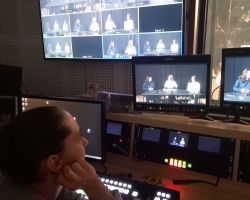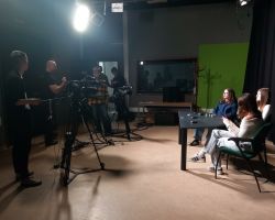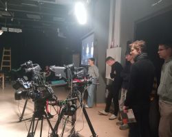 Január 24-én a 10. B osztállyal ellátogattam a Károli Gáspár Református Egyetem Bölcsészettudományi Karának stúdiójába. A leendő média és kommunikáció szakos hallgatók itt vehetnek fel hang- és képanyagokat, majd itt is vághatják meg azokat. A gyerekek ipari kamerákat tehettek itt össze, majd saját műsort készíthettek. A saját műsor készítése során mindenki saját feladatot választhatott magának. Voltak, akik műsorvezetők, kameramanek voltak és voltak, akik a keverő pultot kezelték és közben instruálták az operatőrök munkáját. A gyerekek nagyon élvezték és többen is jelezték a program után, hogy szívesen foglalkoznának ilyesmivel a jövőben. (Halász Réka)