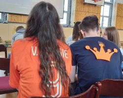 Aznap délután iskolánkban folytattuk tovább az ünneplést, melynek keretében a 9-12. évfolyam hollandos diákjai vehettek részt sorversenyeken. Az egyik feladatban ping pong labdát kellett kanálban egyensúlyozni, miközben klumpában futottak, de volt még szörppong, linzerkarika evés, kvíz játékok, nyelvi szókereső, keresztrejtvény és egy holland tradicionális játékot is kipróbálhattak, a sjoelbak-ot. A nap végén hagyományos holland süteményeket kóstolhattak a diákok, a szokásos csengő helyett pedig holland nyelvű dalok szóltak egész nap a rádióból. Nagyon jól sikerült a program a diákok is jól érezték magukat.