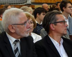 Az istentisztelet része volt egy verssel és hegedűjátékkal tarkított ünnepi műsor is, amely során Tóth Csaba Csongor, az iskola igazgatója köszöntötte a vendégeket és elevenítette fel az elmúlt harminc év emlékeit, az áldást követően pedig minden résztvevőt szeretetvendégségre hívtak meg az épület aulájába. A szépen feldíszített épületben, a terített asztalok mellett az egykori diákok nosztalgiázva elevenítették fel azokat az időket, amikor Bognár Józsefnek, az újrainduló iskola első igazgatójának vezetése alatt még albérletben, ping-pong asztalok körül ülve zajlottak a nyelvórák, és kilenc épület között ingázva folyt az oktatás, hiszen a Gimnáziumnak még sem tornaterme, sem kísérletekre alkalmas szaktantermei nem voltak. Felidézték Józsi bácsinak egykori mondását is, miszerint, ha az Iskola nem kap sürgősen egy használható épületet, ahol megkezdhetik a tanítást, ki fog bérelni pár buszt, leparkolnak a Kálvin tér közelében, és azokban fogják tartani a tanórákat.