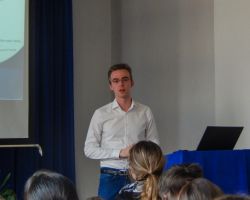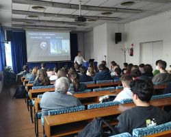 Előadónk, gimnáziumunk régi diákja, Szilágyi-Sándor András volt, aki az ELTE végzős hallgatója, geofizika Msc, űrkutatás és távérzékelés szakon.