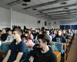 Nagy érdeklődéssel várt előadásra az előadótermet szinte teljesen megtöltötték tanulóink, akik nagyon aktívan – kérdésekre válaszolva és kérdésekkel bombázva az előadót – vettek részt a foglalkozáson. Az interaktivitást színesítették az aktuális kutatásokról és kísérletekről készült rövid filmbejátszások.