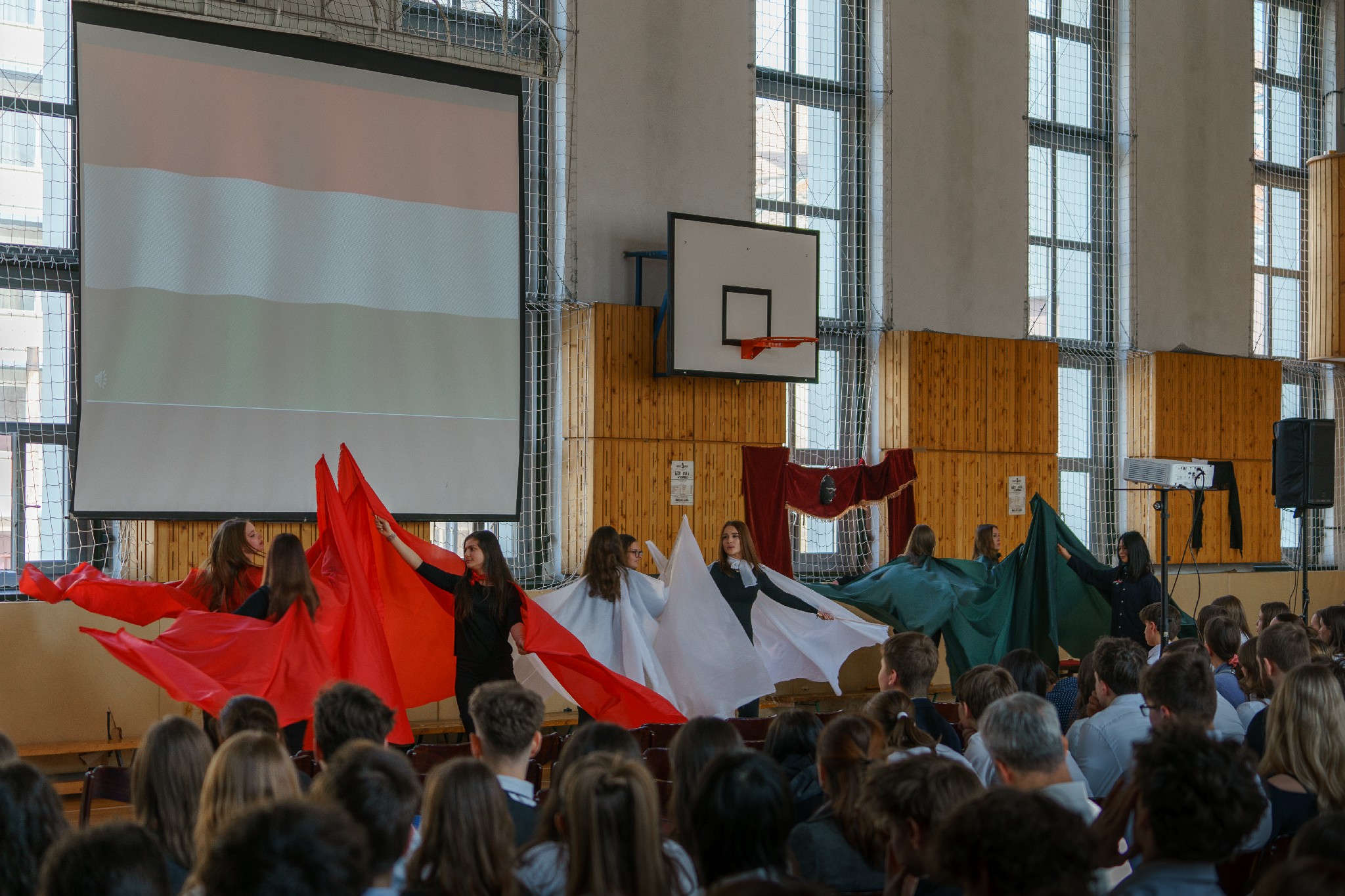 Iskolánkban a hétfői napon emlékeztünk meg 1848. március 15-éről. A 9. A és 9. B osztály által szervezett műsort néptánc és a kórus előadása színesítették.