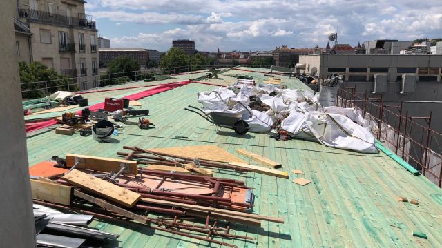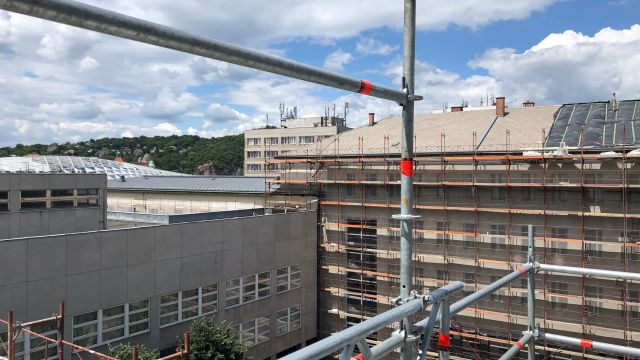 A Lónyay Utcai Református Utcai Gimnázium megújulása, energetikai korszerűsítése – kihasználva a nyári szünetet – nagy erőkkel halad. Az építőanyagok mozgatása jelentős kihívás elé állította a kivitelezőt, de jelentős gépesítéssel, speciális daru alkalmazásával sikerült megoldani a logisztikai feladatokat.