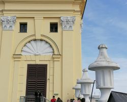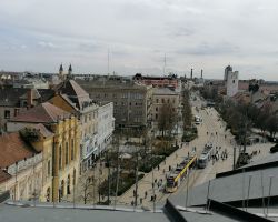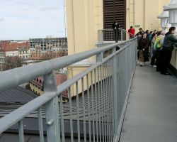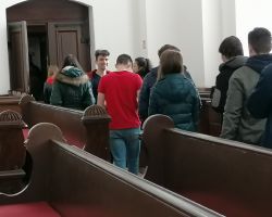 Az előadás után átsétáltunk a Debreceni Református Nagytemplomba, ahol a helyi gyülekezet egyik tagja mesélt nekünk az épület történetéről. Ezután együtt felmentünk a templom emeletére. A magasból gyönyörű kilátás nyílt Debrecen városára.