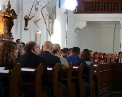 Az istentisztelet másfél órán át tartott, és számos egyházi és közéleti méltóság vett részt azon, mind a magyar mind a szerb állam és polgárai képviseletében. Az istentisztelet szolgáltatását Balog Zoltán, a Magyarországi Református Egyház Duna melléki egyházkerületének püspöke vezette, és a közreműködő, mintegy 30 Kárpát-medencei püspökkel és lelkésszel együtt szentelték fel Harangozó Lászlót. Jelen volt Potápi Árpád, a Miniszterelnökség nemzetpolitikáért felelős államtitkára is.
