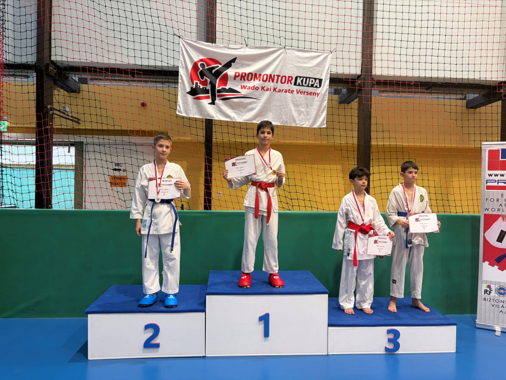 Lévay Nimród 6.B osztályos tanulónk a hétvégi Promontor Kupán kümite (harc) kategóriában aranyérmet szerzett.