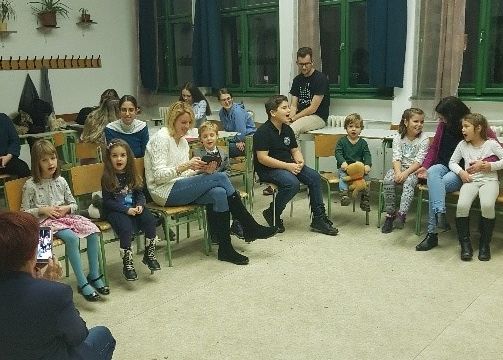 Idén december 5-én 17 órától vártuk a 12. a osztály több segítőjével a tanárokat, és kisgyermekeiket. Az alkalom elején énekeltünk, eszegettünk-iszogattunk, majd megérkezett a Mikulás hűséges Krampuszával. Egyesével, névre szólóan megdicsérte a kicsiket, rájuk jellemző írások segítségével, amiket még az előző napokban a szülők sok szeretettel írtak meg, hogy ezzel is segítsék a Télapó munkáját.